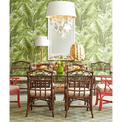 Chippendale Red Tomato Rattan Wing Chair