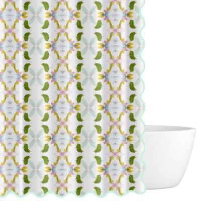 Monets Navy Garden Scalloped Shower Curtain