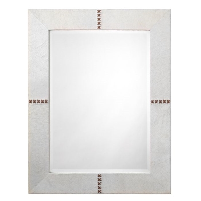 White Hide Leather Wall Mirror