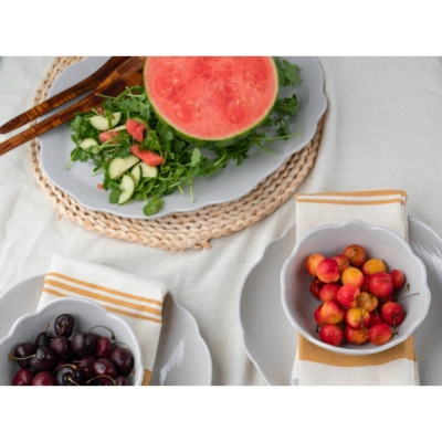 Scalloped Stone Melamine Serving Platters (set of 2)