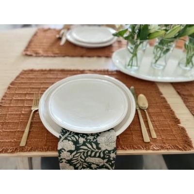 Double Line Cream Melamine Serving Platters (set of 2)
